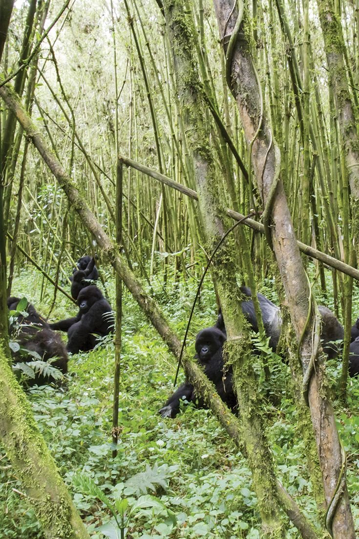 Una de las experiencias más conmovedoras de África. Acompañados por guías expertos, los visitantes caminan por la densa selva hasta encontrarse cara a cara con familias de gorilas de montaña. Una mirada directa con uno de estos gigantes es un momento que marca la vida.
